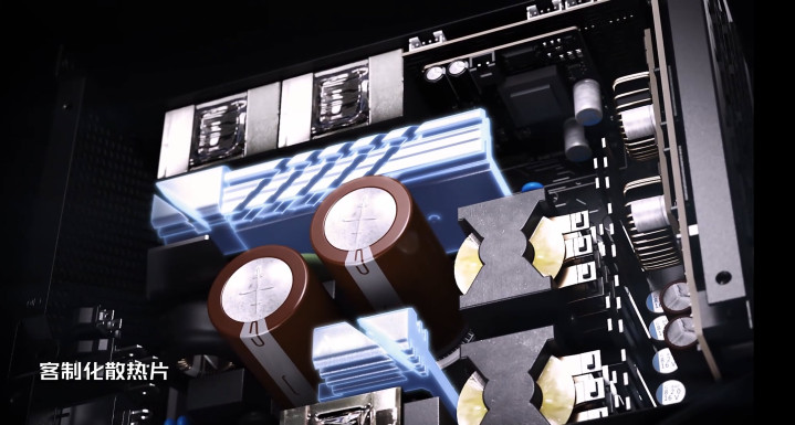 电源采用100%全日系105°C电解电容,属于伺服器等级用料,具有耐高温、寿命长、稳定性强的优势,能够承受最极端的高负载需求,确保电源长期稳定运行,即使是长时间满负载工作,也能保持出色的性能表现。此外,电源还配备了大型散热片,采用斜切设计,有效引导气流,在有限空间内覆盖最多的电容,极大化提升散热效率,延长电容器的使用寿命。