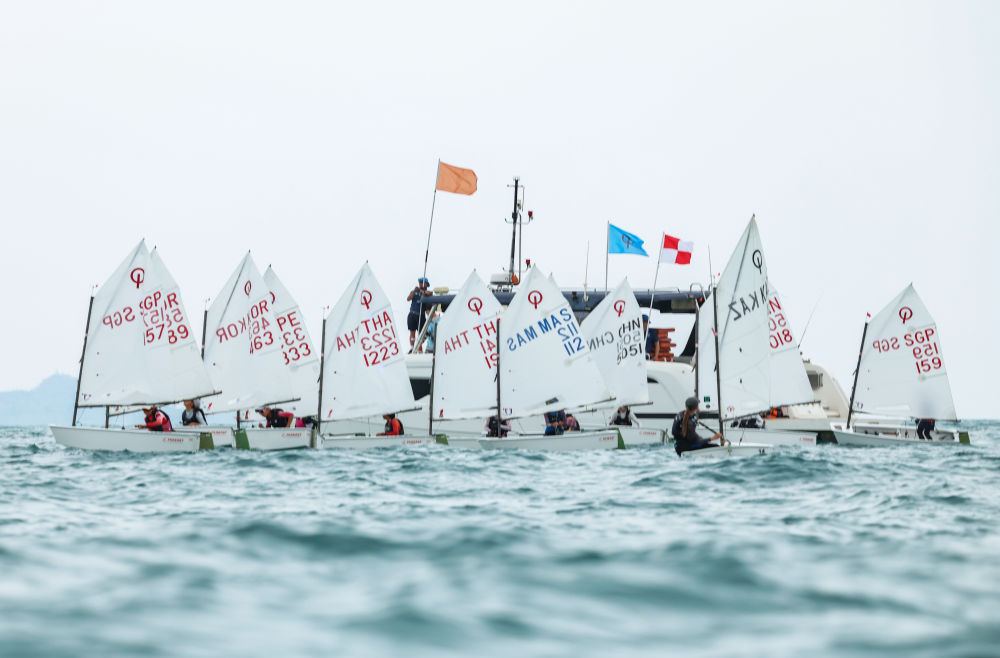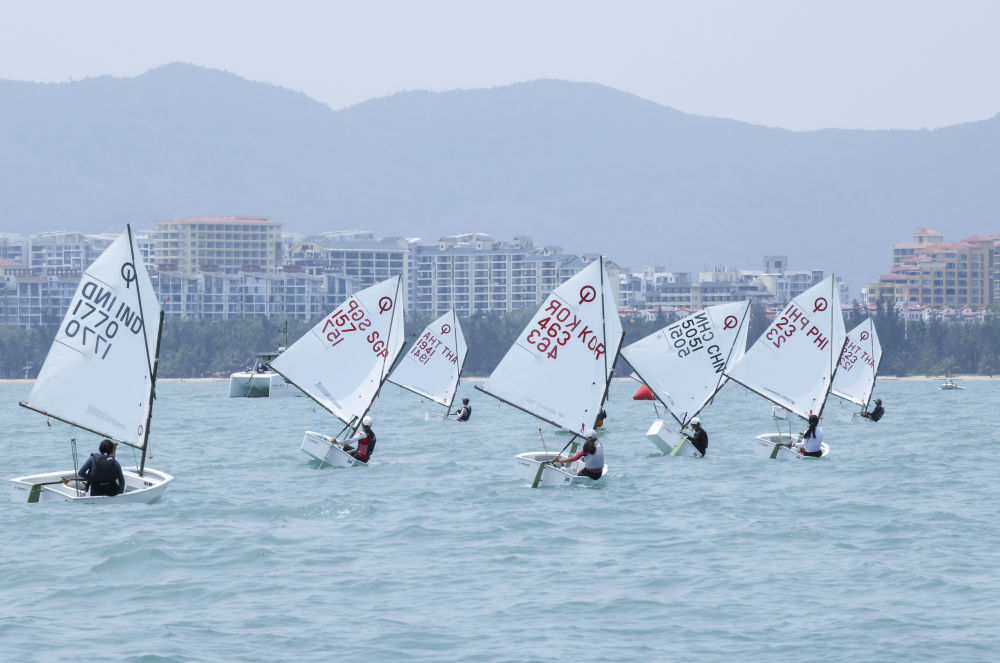 4月23日,选手们在亚沙会帆船女子OP级比赛中。新华社记者 张帆 摄